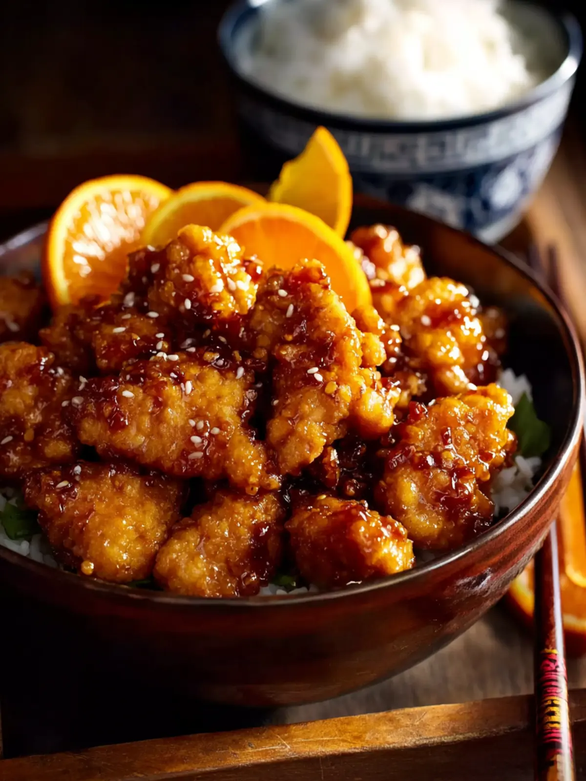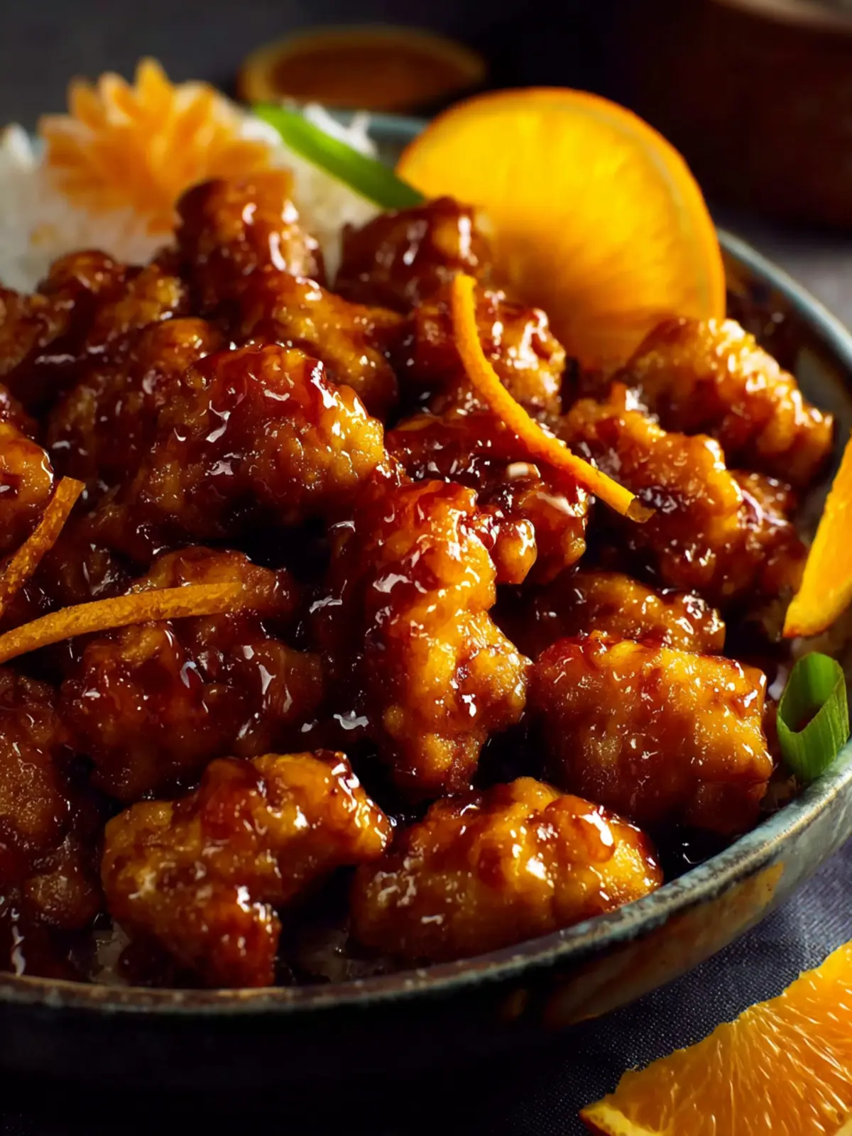 The classic pairing of orange chicken with fluffy steamed rice is unbeatable. The rice balances the tanginess and sweetness of the sauce perfectly, soaking up every delicious drop.
