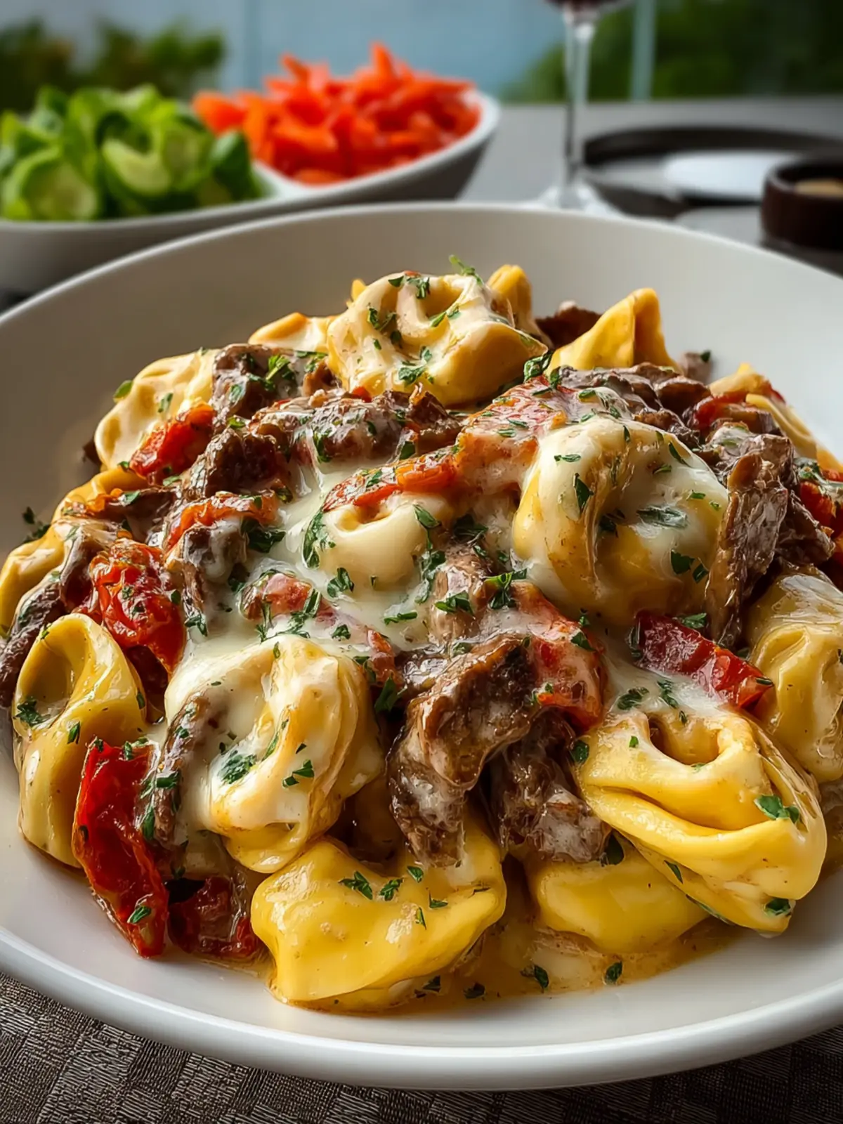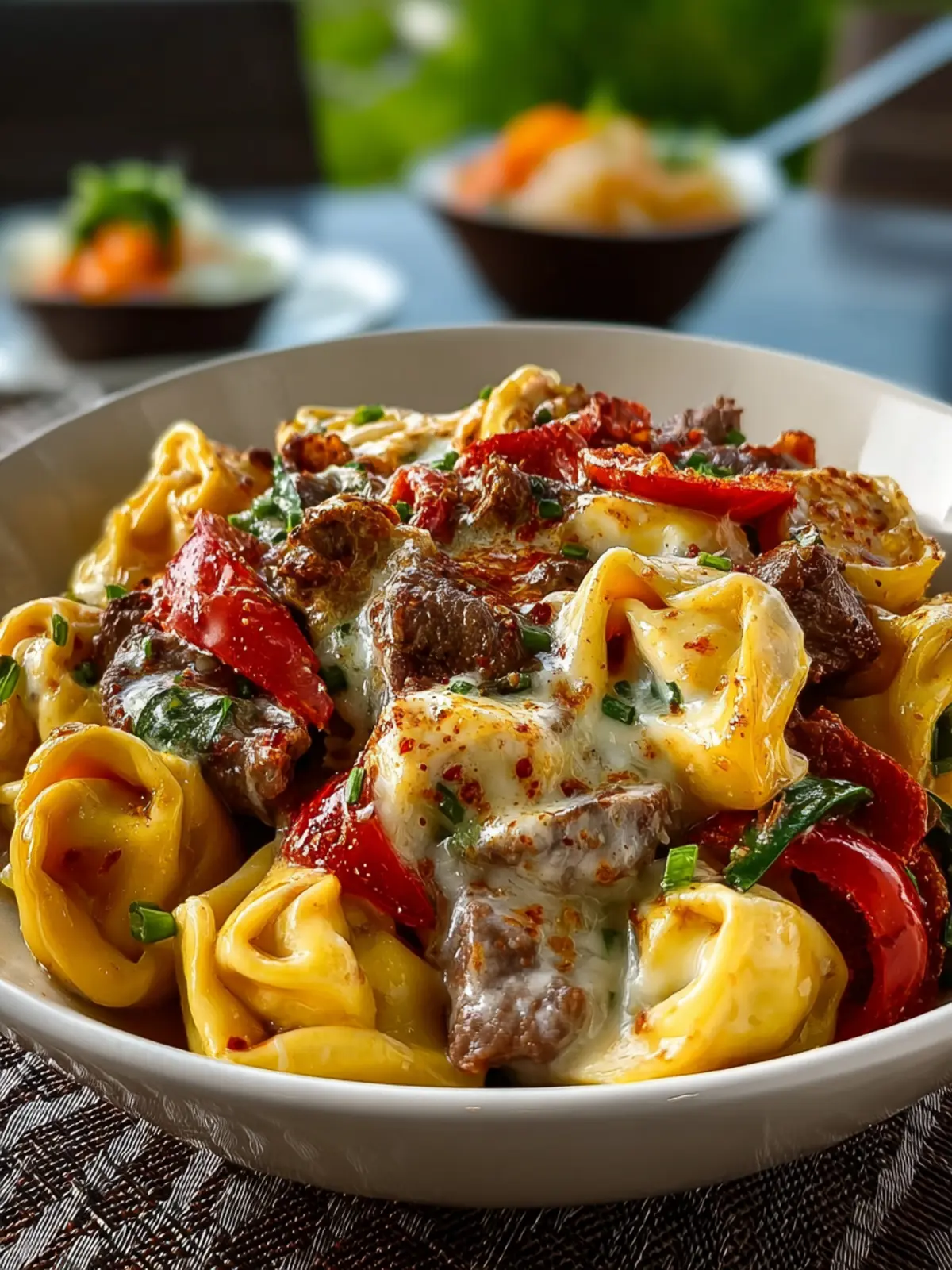 This dish is perfect for families. Picture this: a weeknight after a long day at work, and everyone is hungry. The rich flavors of the cheesesteak combined with tender tortellini simply call out for seconds. It appeals to both the little ones and the adults alike, making your dinner table a happy place and eliminating mealtime battles.