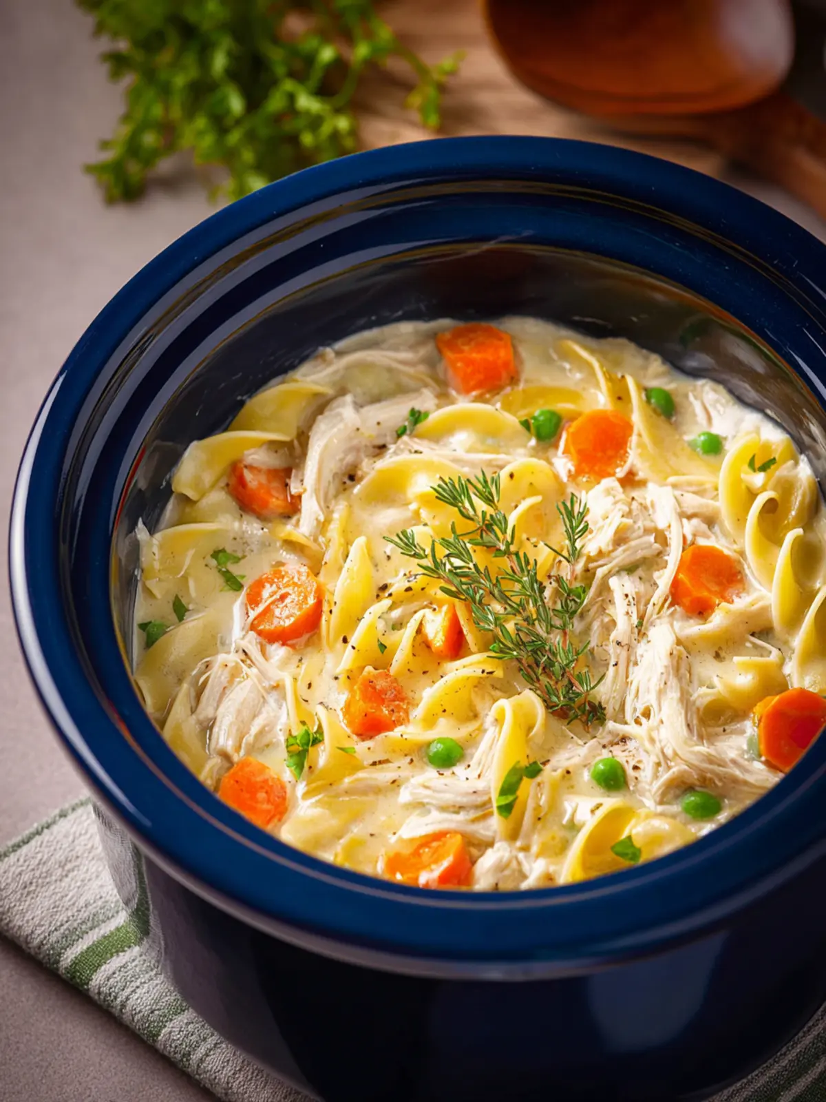 The type of noodles you use matters! Egg noodles hold up beautifully in the slow cooker and absorb the soup’s creaminess without becoming mushy. If using other pasta types, add them during the last 30 minutes of cooking to maintain their texture.
