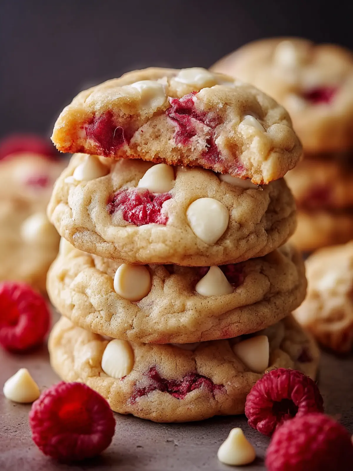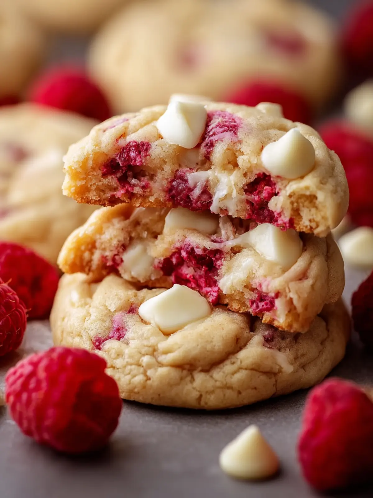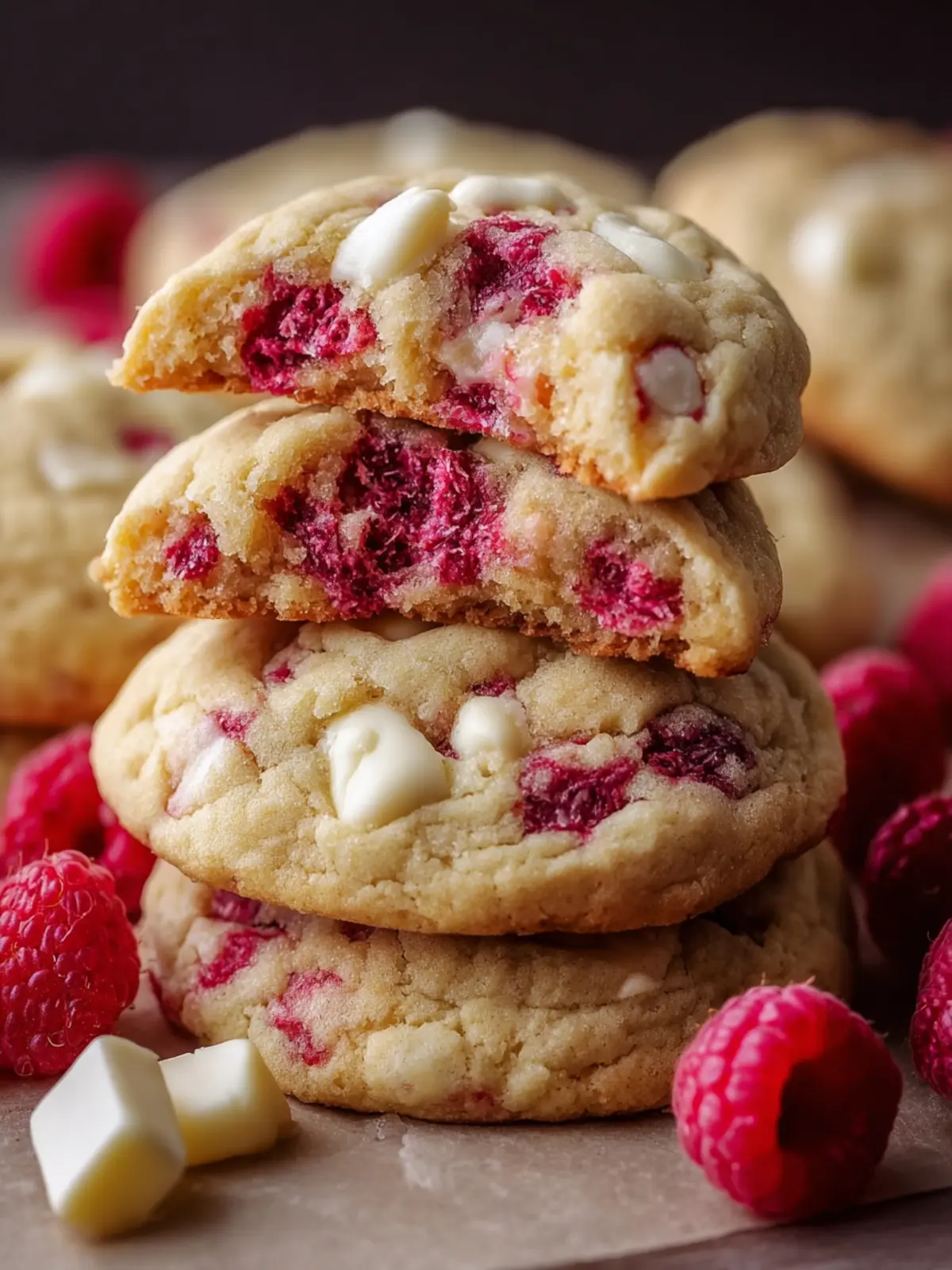 Delicious cookies filled with fresh raspberries and white chocolate.