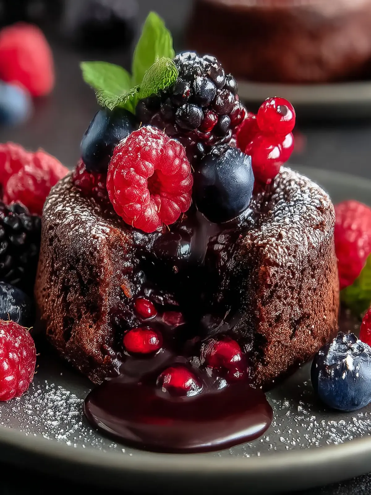 Imagine cracking through the rich, velvety chocolate exterior to reveal a luscious, gooey center. As the warm chocolate sauce flows onto the plate, you can almost hear the collective gasp of delight from your guests. Each bite bursts with the tart sweetness of mixed berries, harmoniously complemented by the decadent chocolate. Not only are these cakes a feast for the taste buds, but they also elevate the dining experience, turning an ordinary night into something truly special.