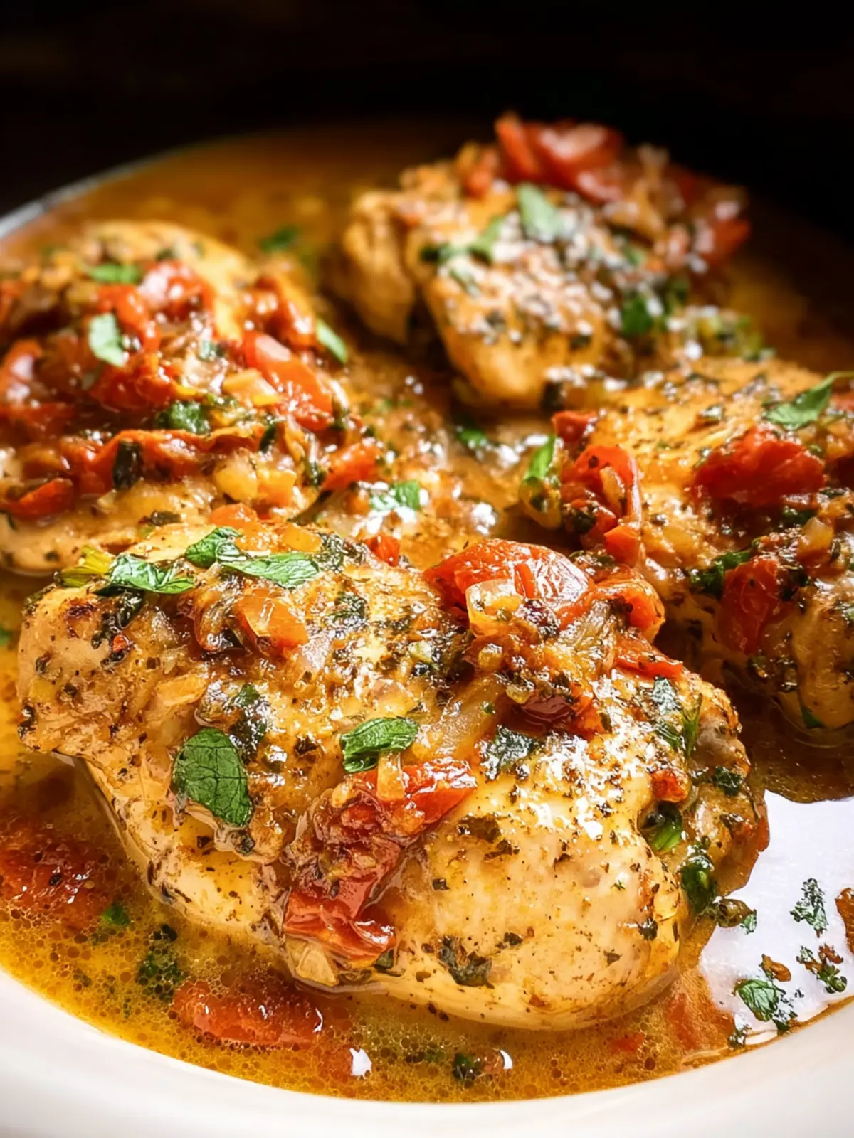 - Plating: Serve the Irresistible Crock Pot Tuscan Chicken in shallow bowls, topped with a sprinkle of fresh basil and grated Parmesan cheese for that authentic Italian touch.