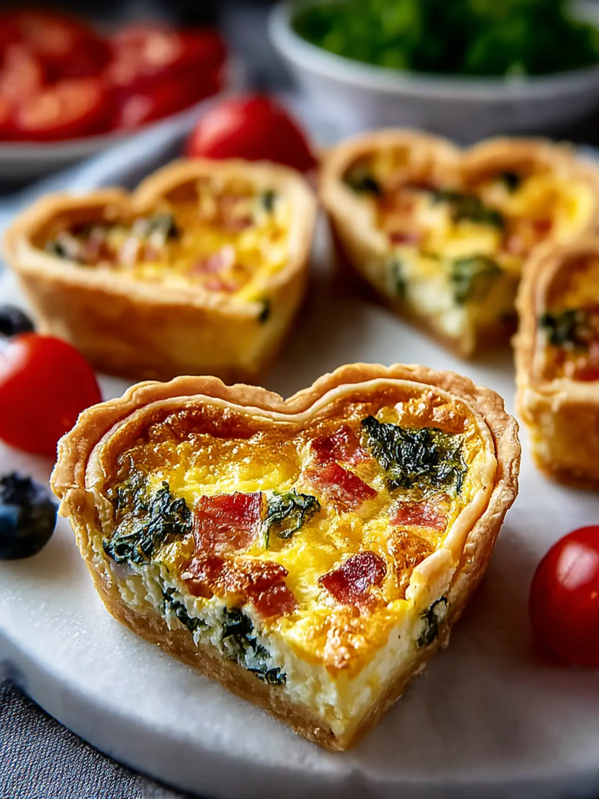 With these vibrant ingredients, your Irresistible Easy Heart Shaped Quiche is sure to be the highlight of the brunch table.
