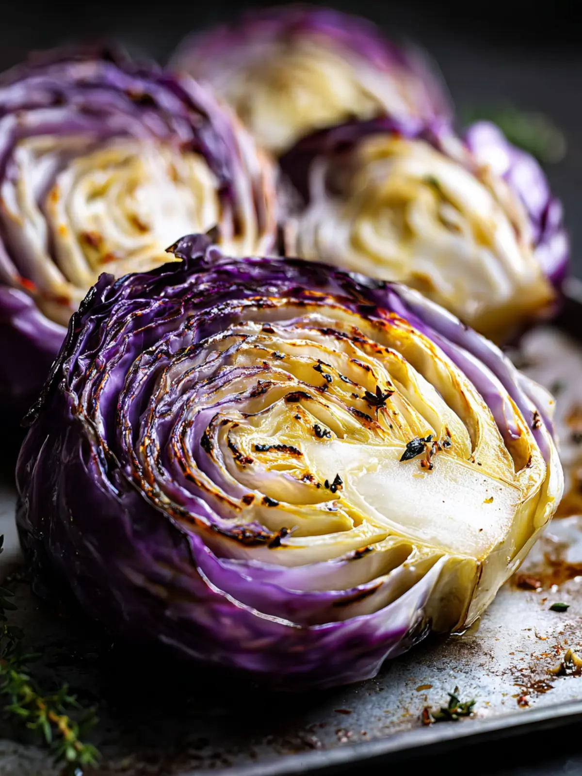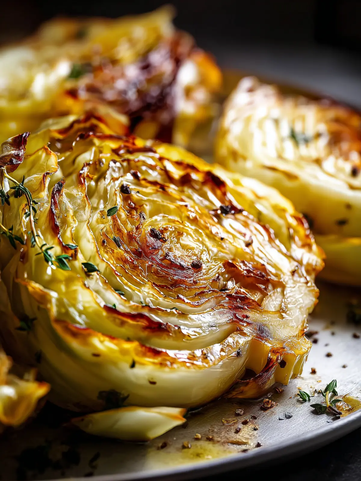 Delicious roasted cabbage wedges that are golden brown and tender, seasoned with garlic and spices.
