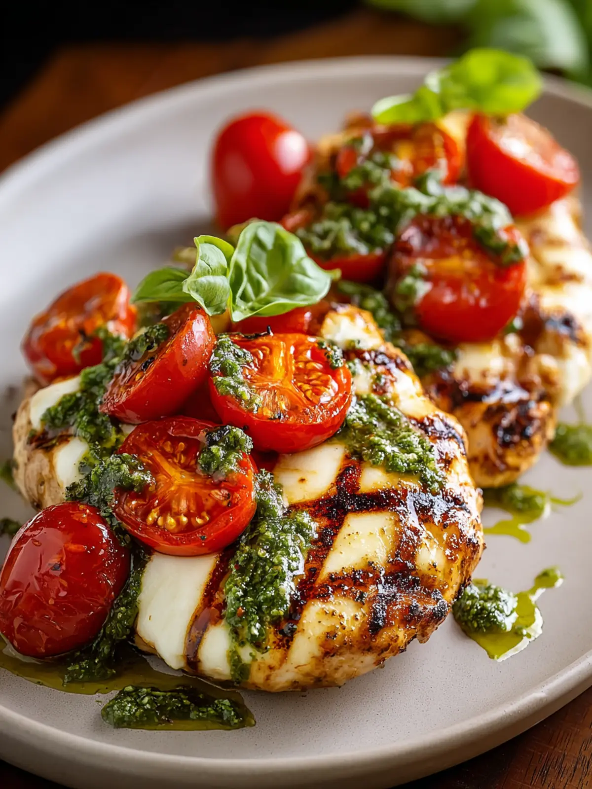 Fresh Ingredients: The recipe focuses on high-quality, fresh ingredients. Each component—juicy chicken breasts, sweet vine-ripened tomatoes, and vibrant basil—creates a perfect harmony of flavors that’s hard to resist.