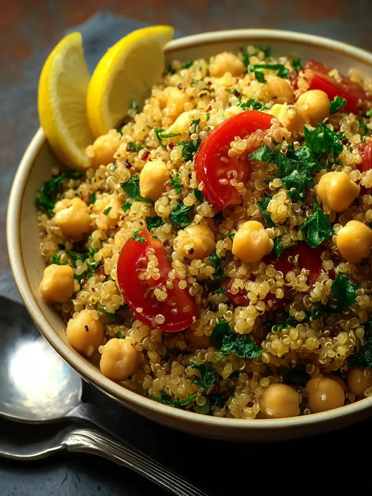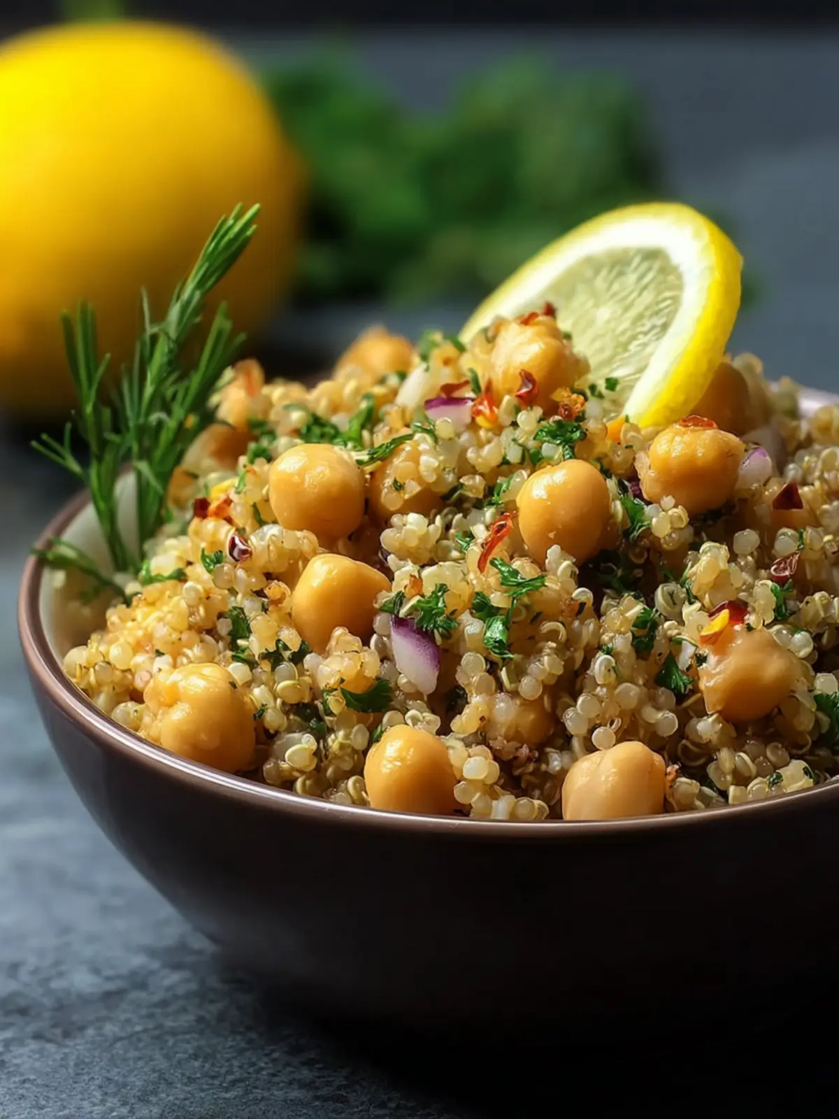 The bright notes of lemon bring a refreshing brightness to the dish, cutting through the earthy tones of the quinoa and chickpeas, creating a beautifully balanced profile. The addition of fresh herbs—such as parsley or cilantro—infuses the dish with a lovely aroma and an extra layer of flavor.