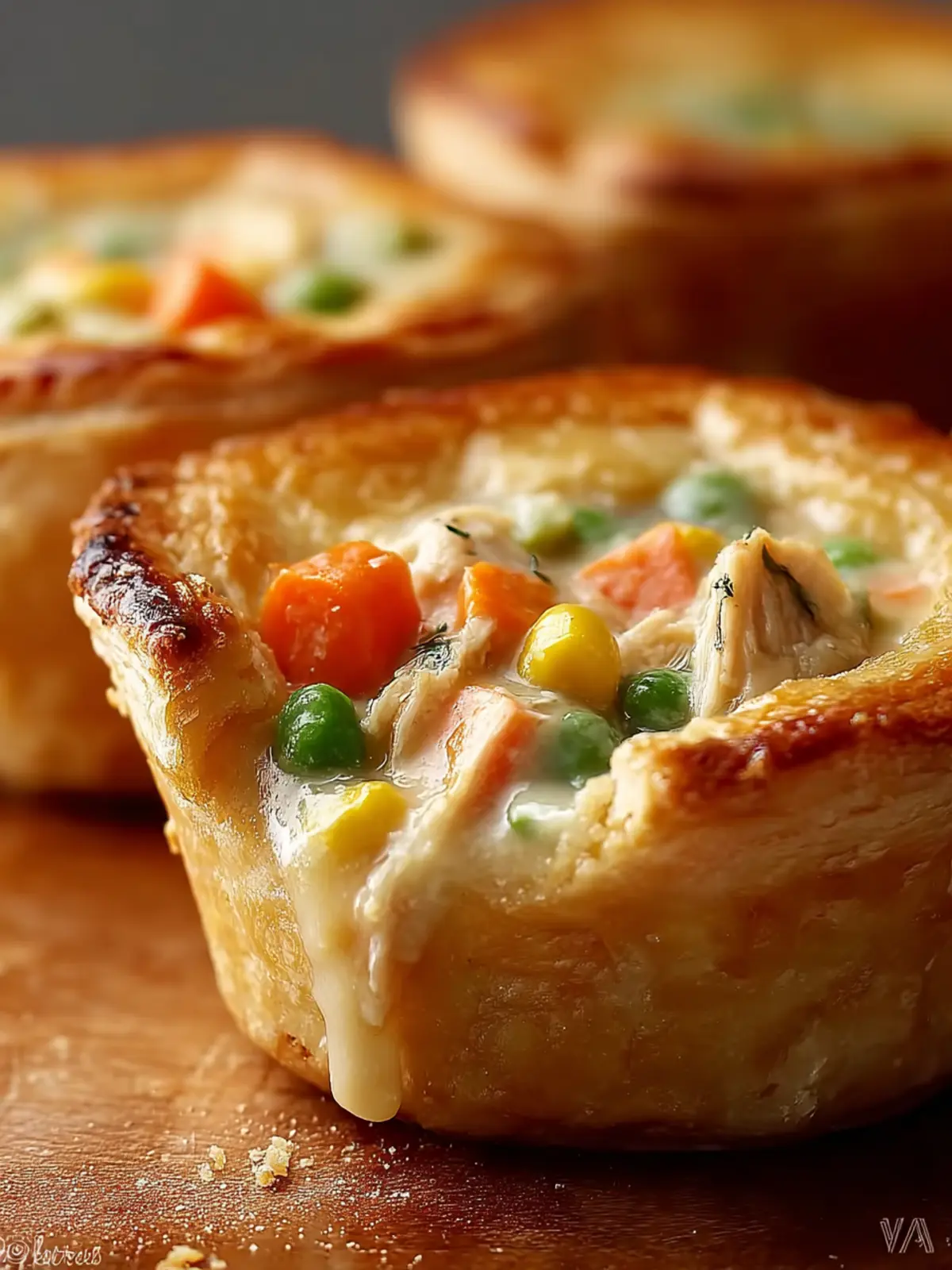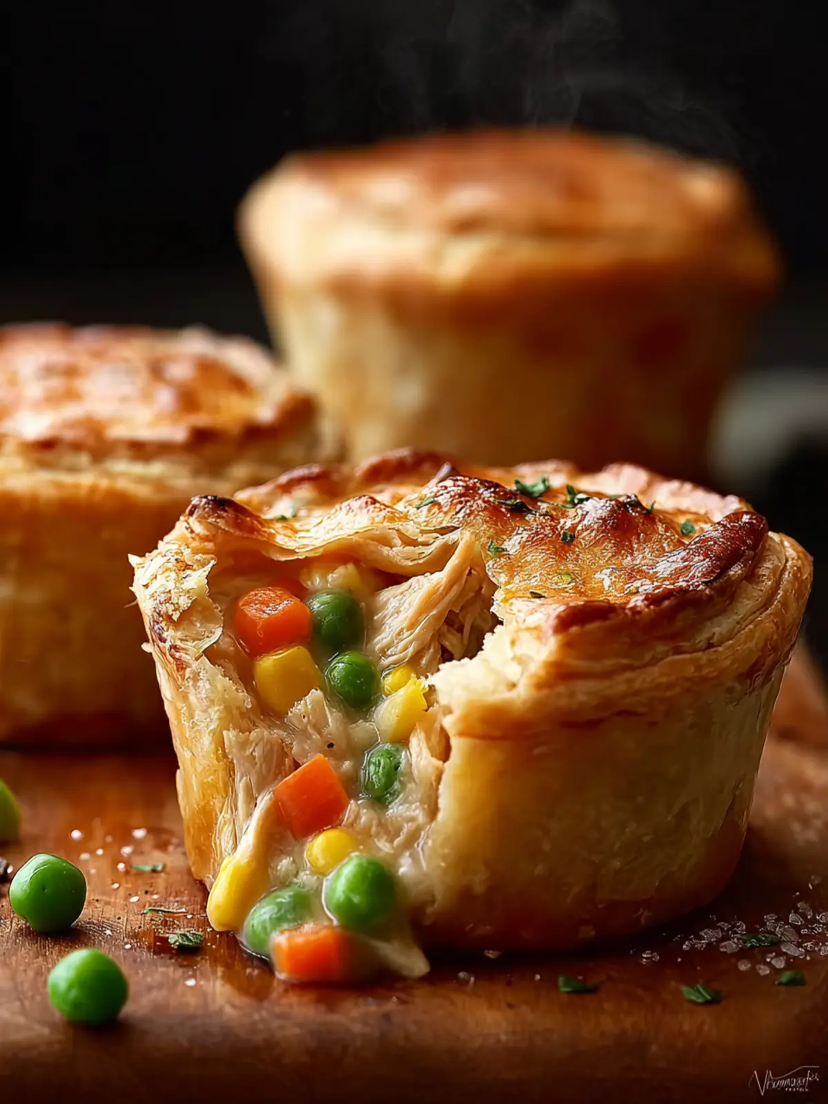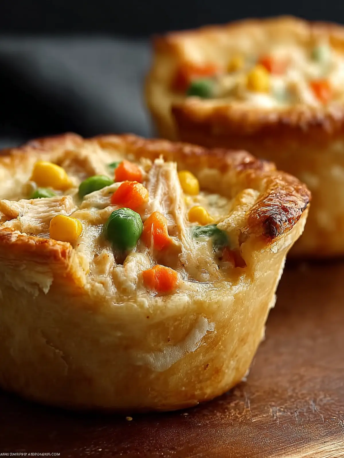 Delicious mini chicken pot pies filled with savory chicken, vegetables, and a buttery crust.