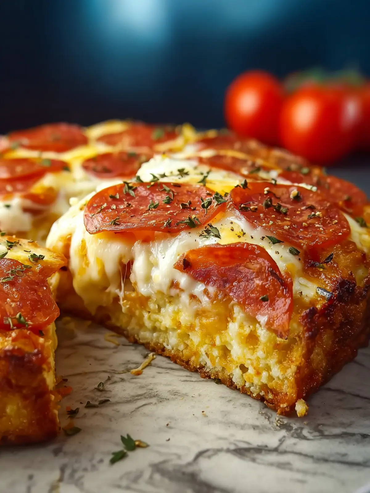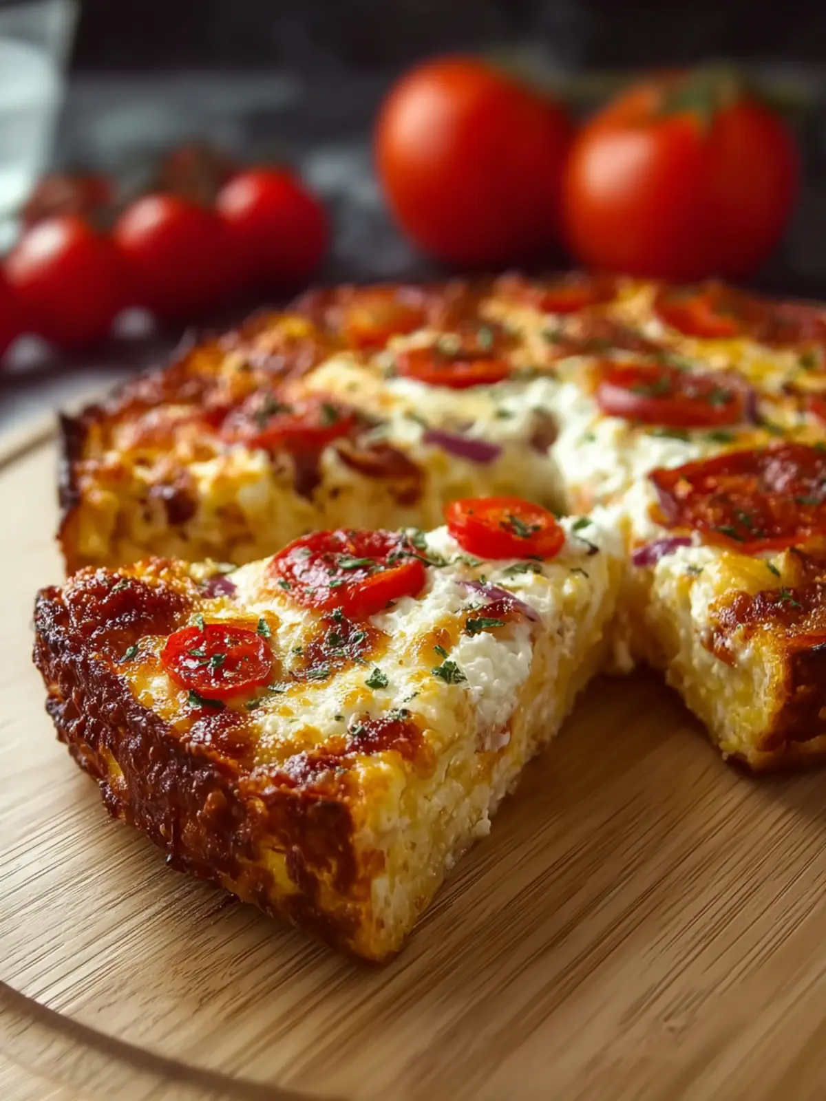 This delicious cottage cheese bake is creamy and full of flavor, topped with turkey pepperoni for a tasty twist.