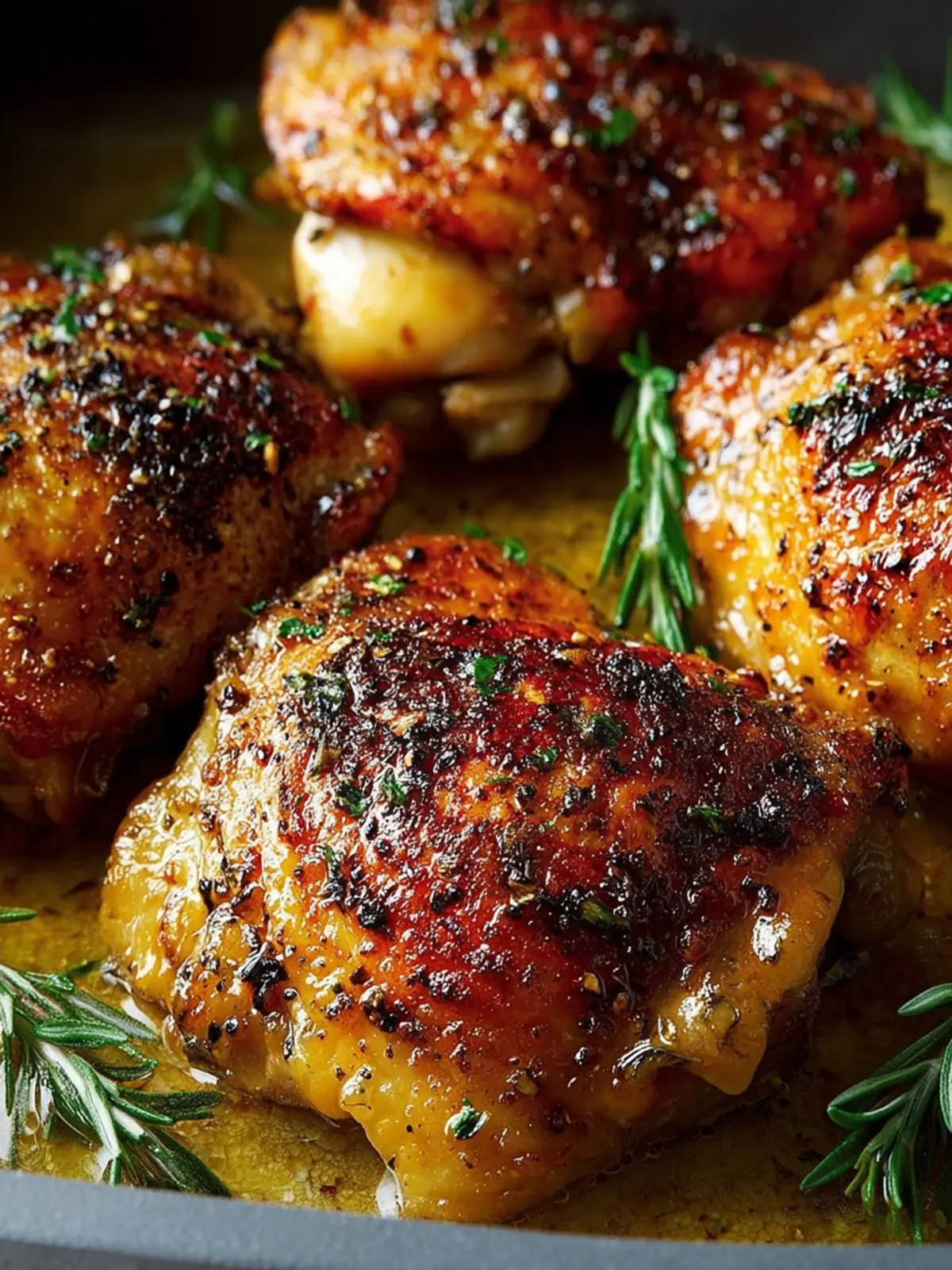 Deliciously seasoned baked chicken thighs that are juicy and flavorful.