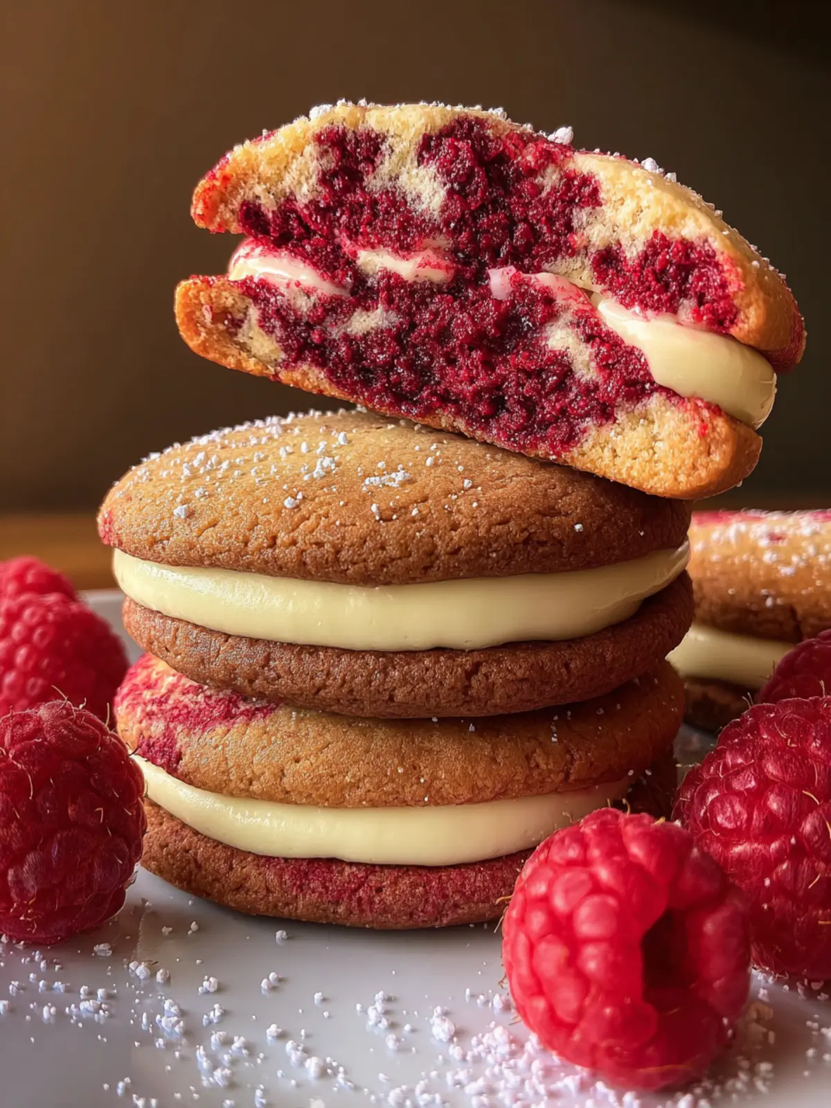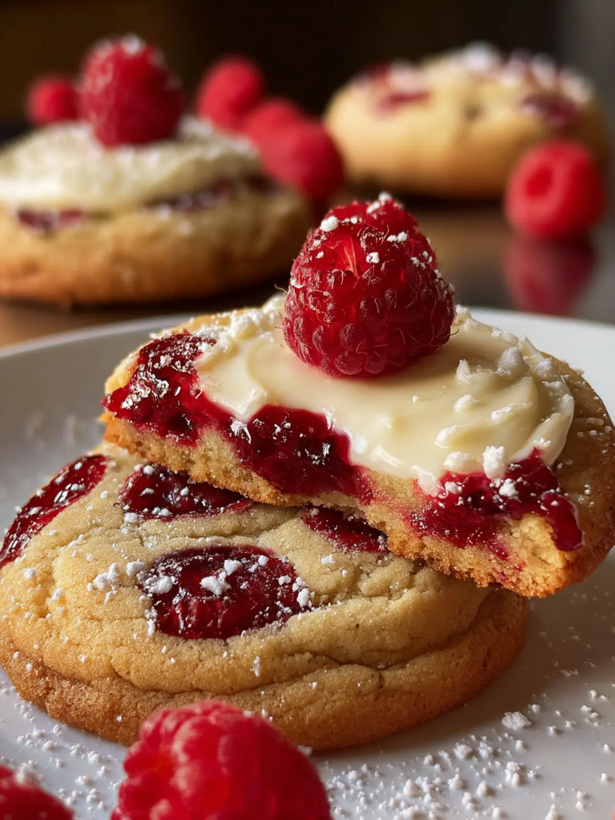 Visual Appeal: The vibrant color of raspberries against the creamy filling makes these cookies as beautiful as they are delicious.