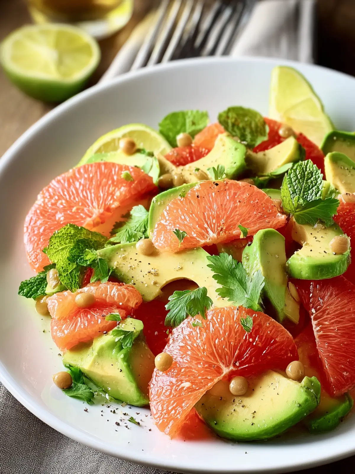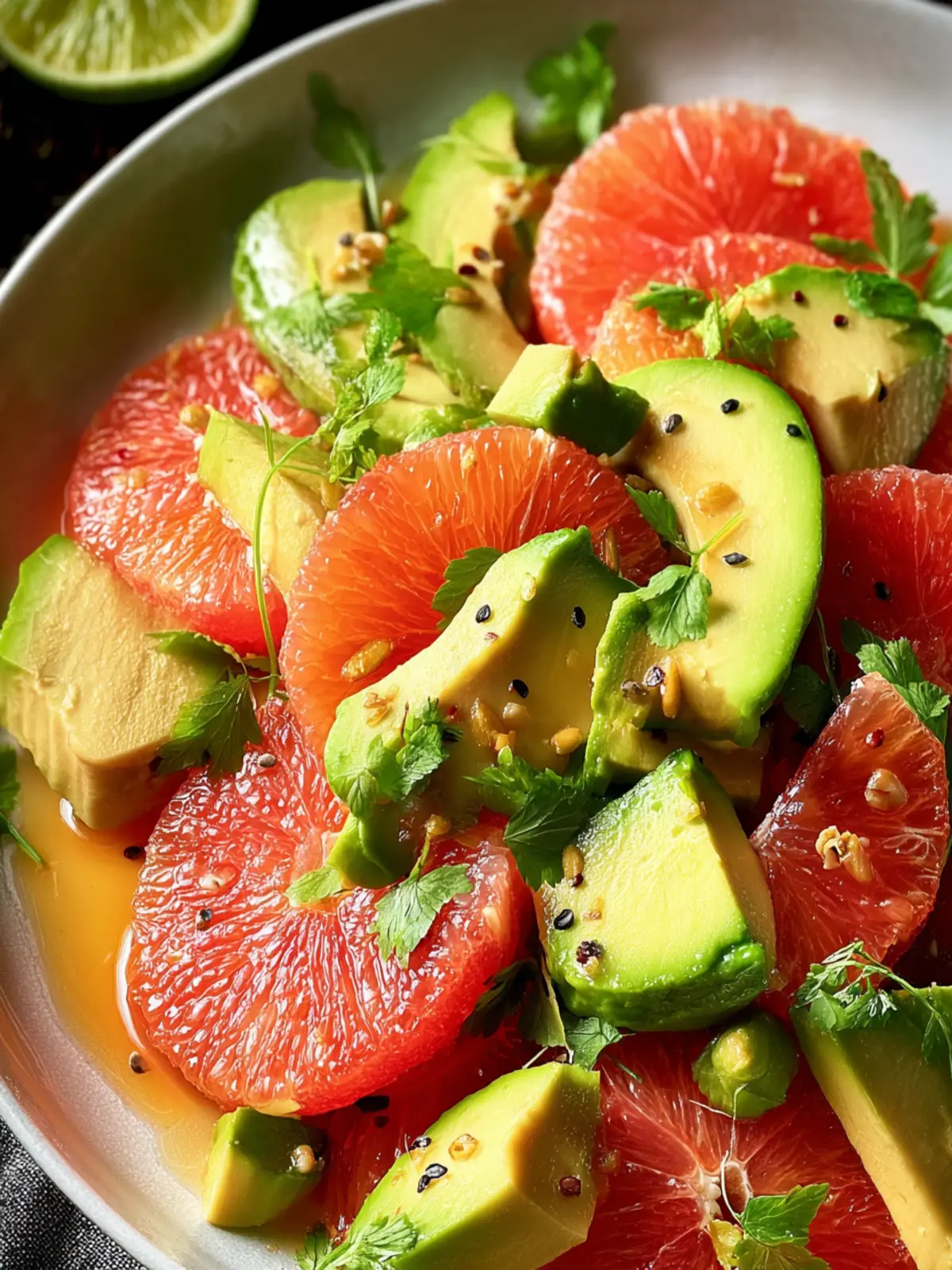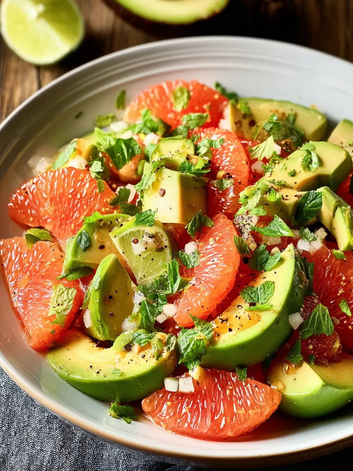 A light and nutritious salad featuring juicy grapefruits and creamy avocados, perfect for a fresh meal.