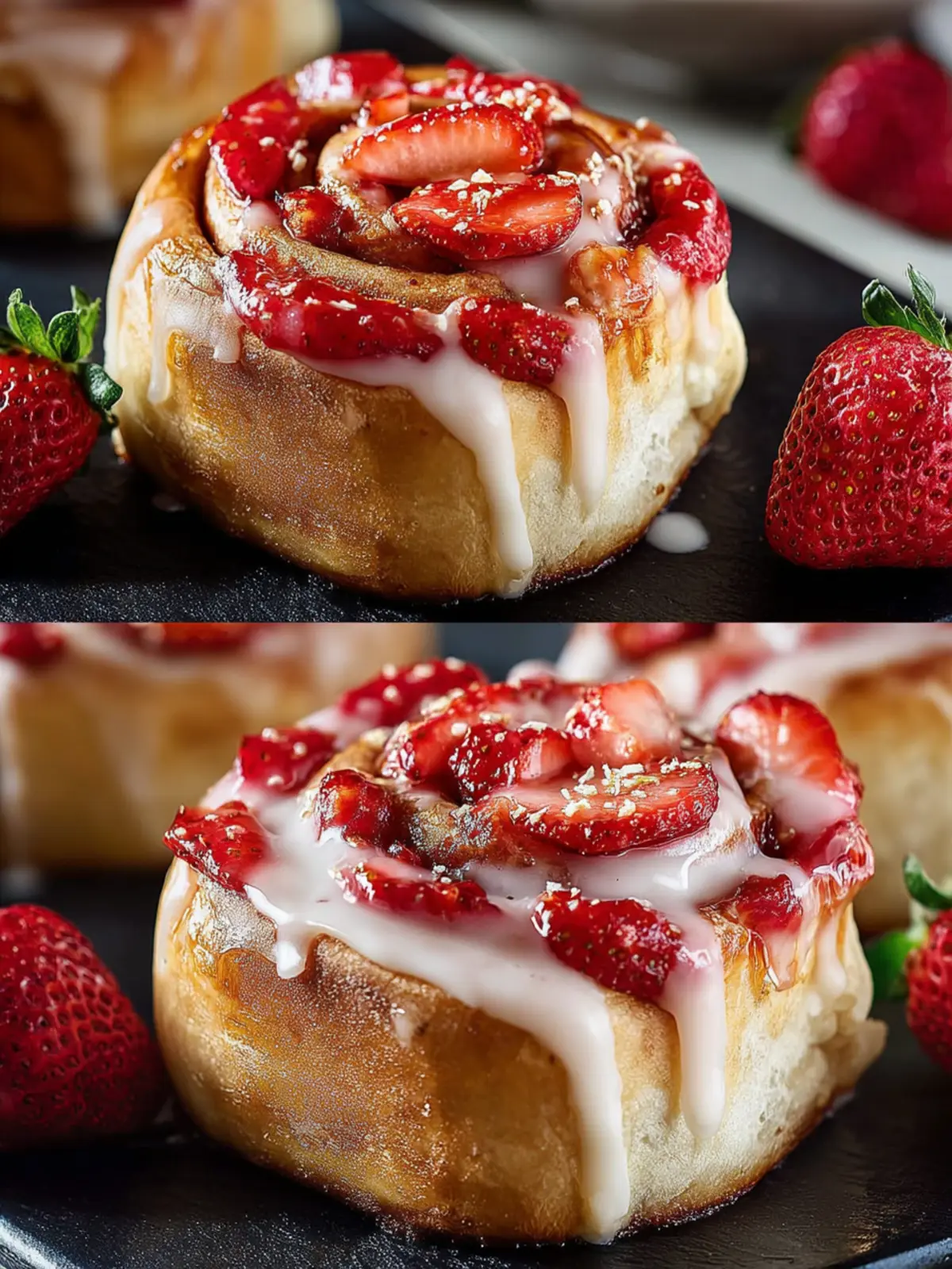 Each bite of these cinnamon rolls transports you to a cozy café, where you can enjoy your favorite dessert with a twist. The balance between the tartness of fresh strawberries and the sweetness of the cream cheese filling creates a luxurious experience that’s simply irresistible. Not only are they a feast for the taste buds, but they also look stunning—perfect for brunch gatherings or special occasions.